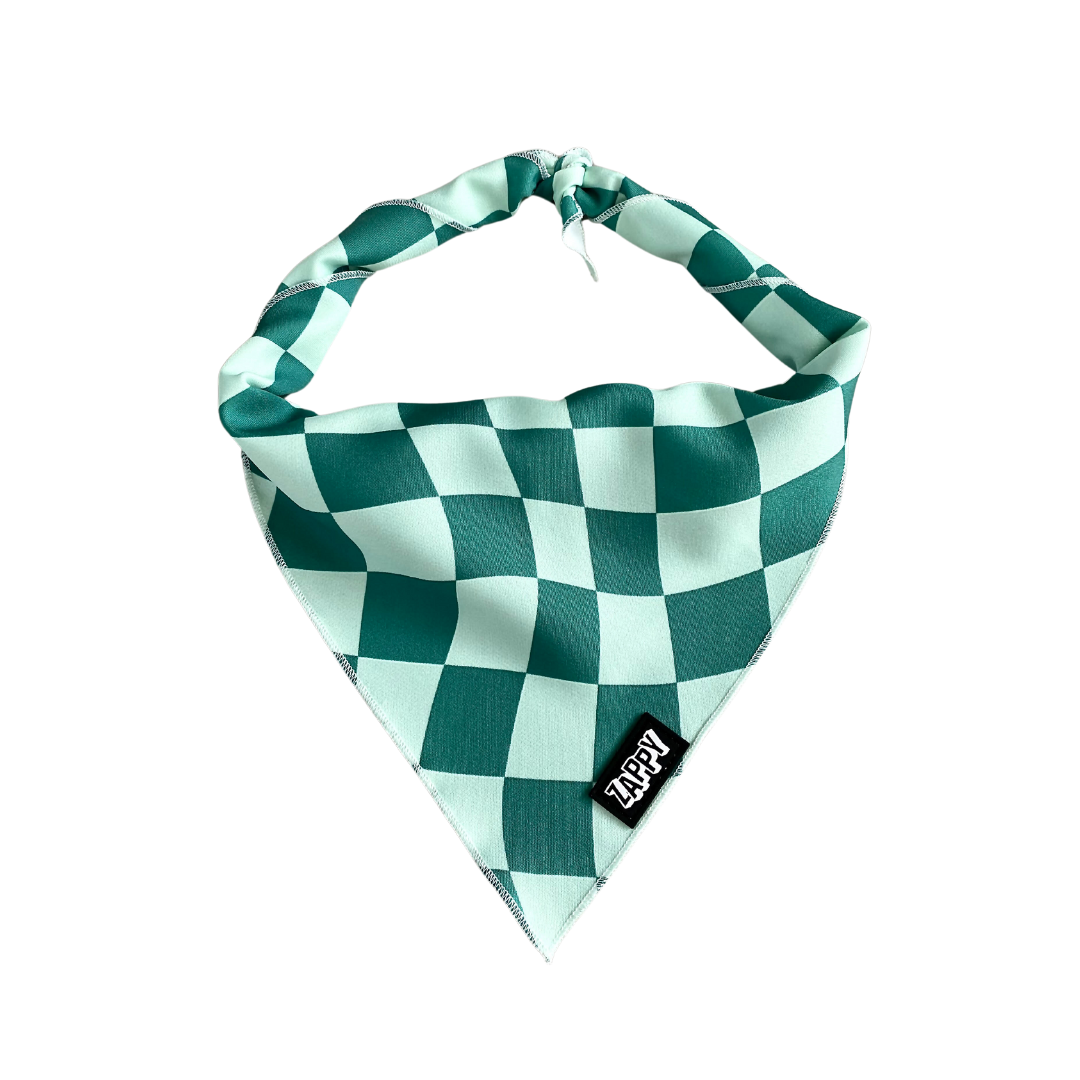 Zappy's wavy checker bandana brings all the retro vibes with a fun twist. Designed to tie comfortably around your pup’s neck — it’s the perfect accessory for beach days, park hangs, or just turning heads on the daily walk.