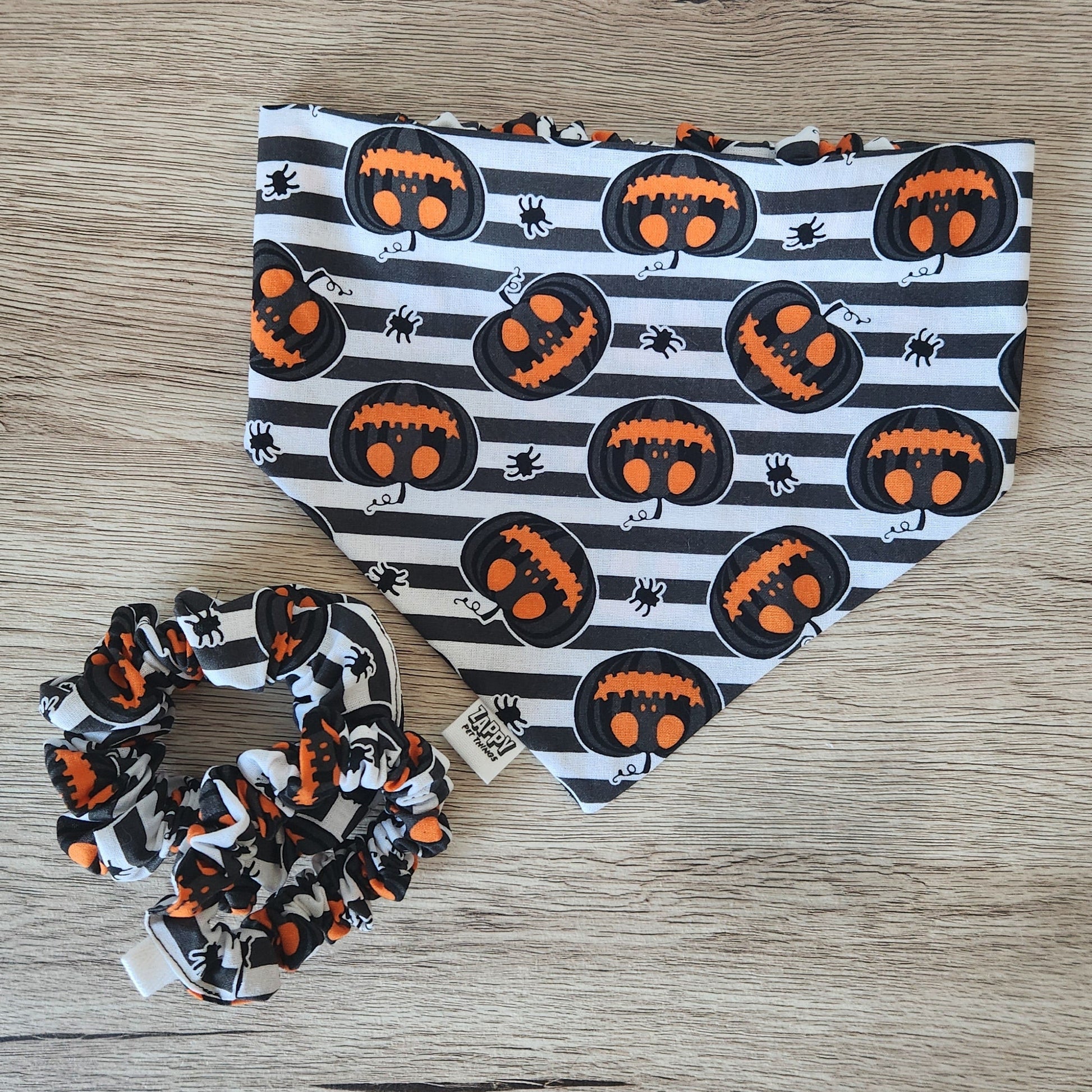 Coordinate with your pup with a spooky Zappy scrunchie bandana π»